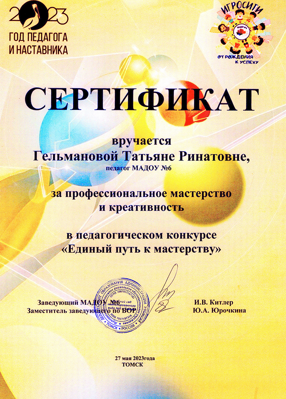 - сопровождая участника профессионального конкурса «Единый путь к мастерству» - воспитателя Татьяну Девятьярову;
