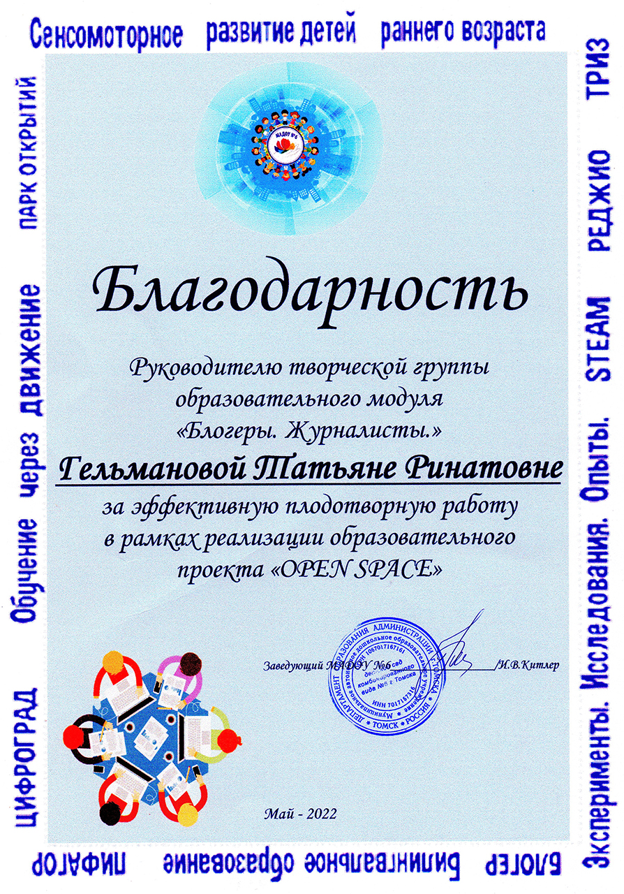Самое важное, что я хотела бы передать всем своим наставляемым: «Никогда не опускать руки, всегда двигаться вперед, уметь находить выход из трудного положения».