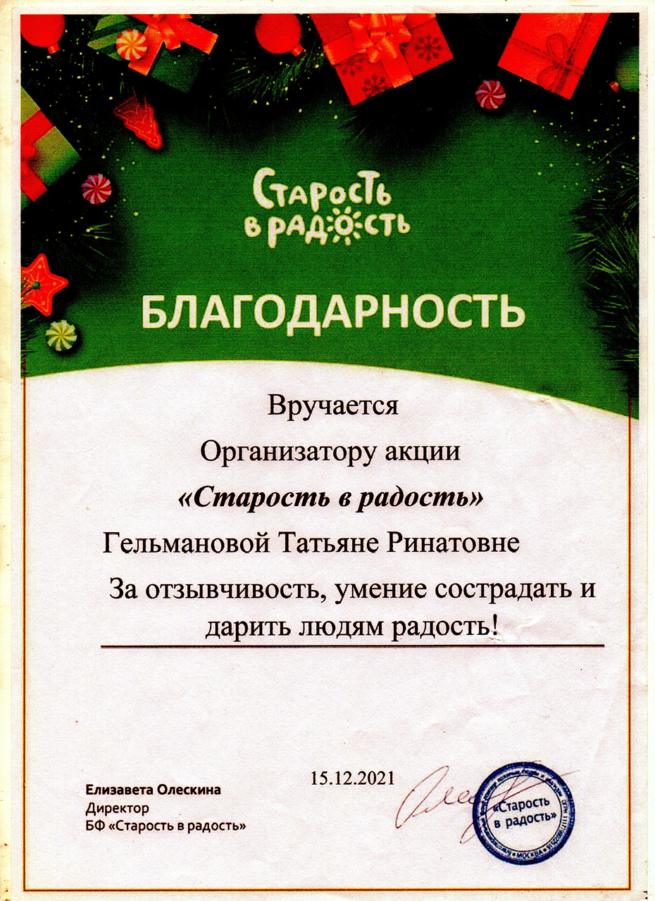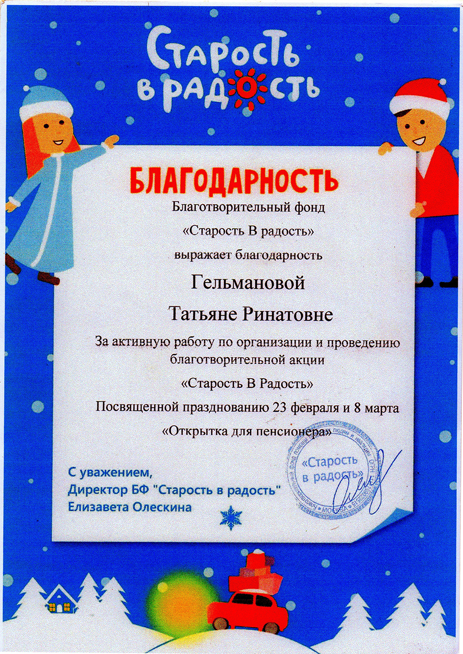 - в акции «Старость в радость» (для одиноких пожилых людей, сотрудников и пациентов хосписа и жителей Дома ветеранов с ребятишками подготовили подарки, открытки с добрыми пожеланиями).